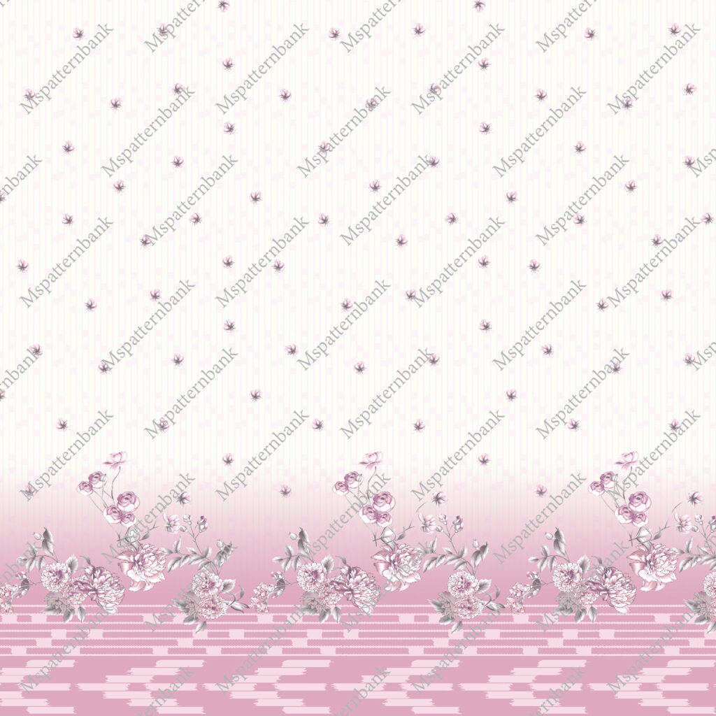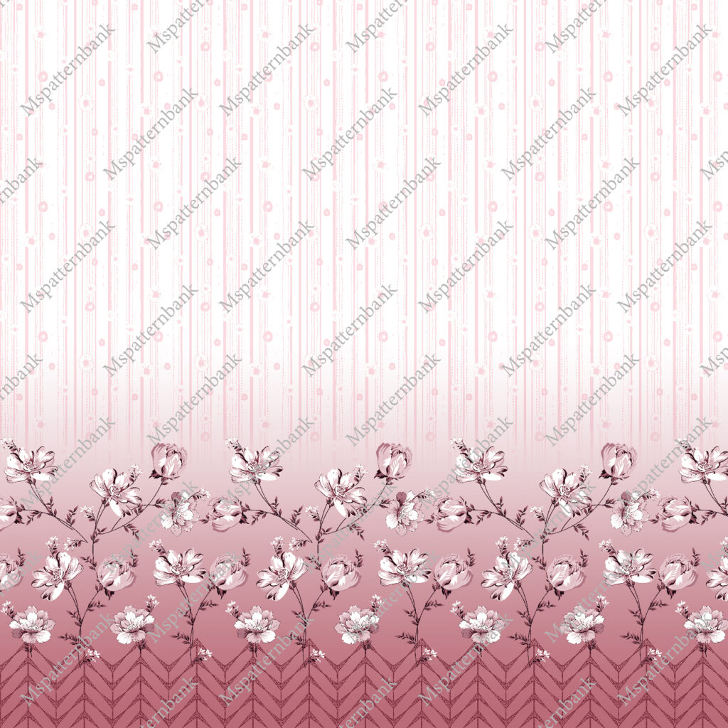 Daman Border Dusty Rose Gradient Floral Print with Vertical Stripes